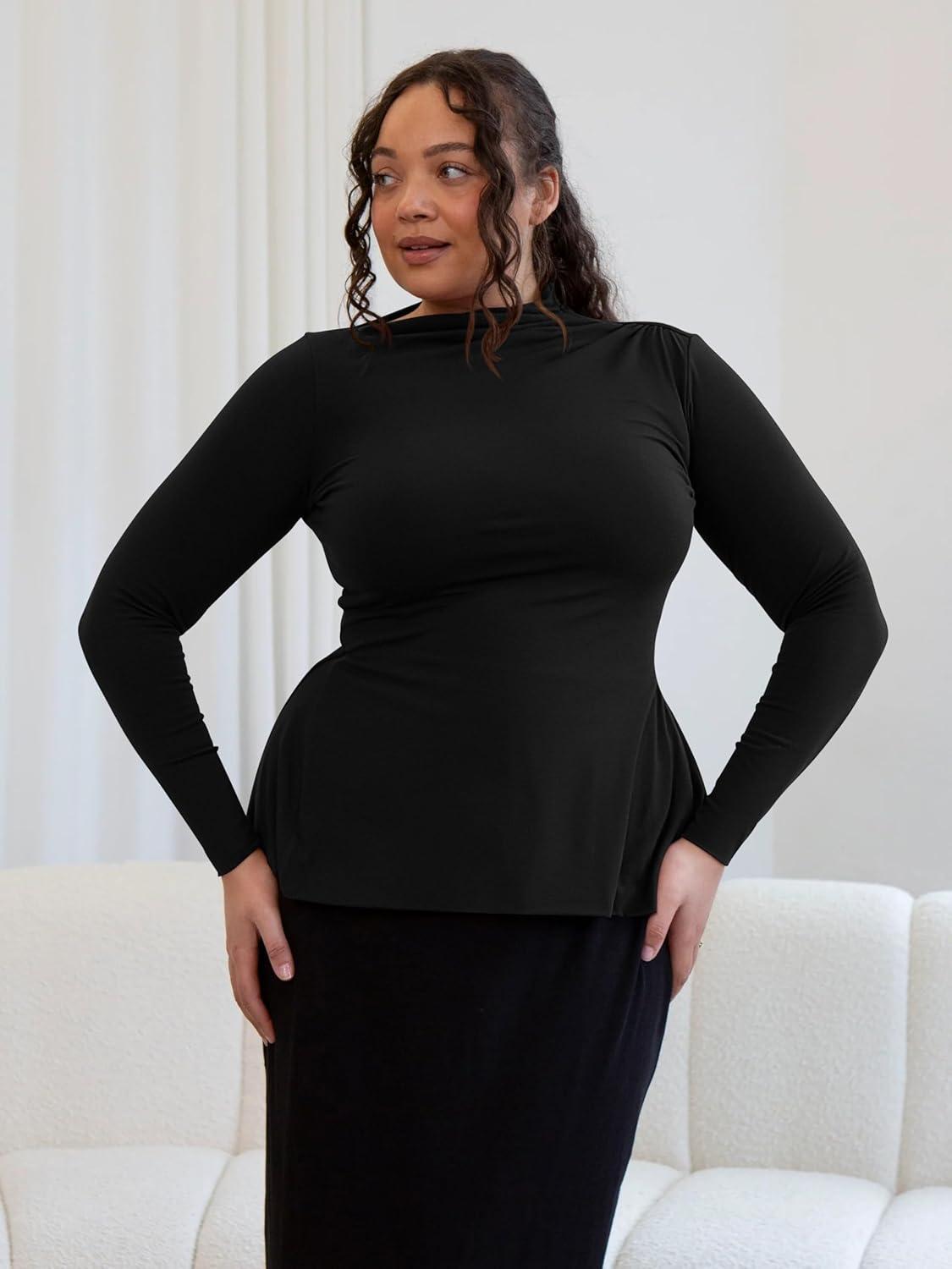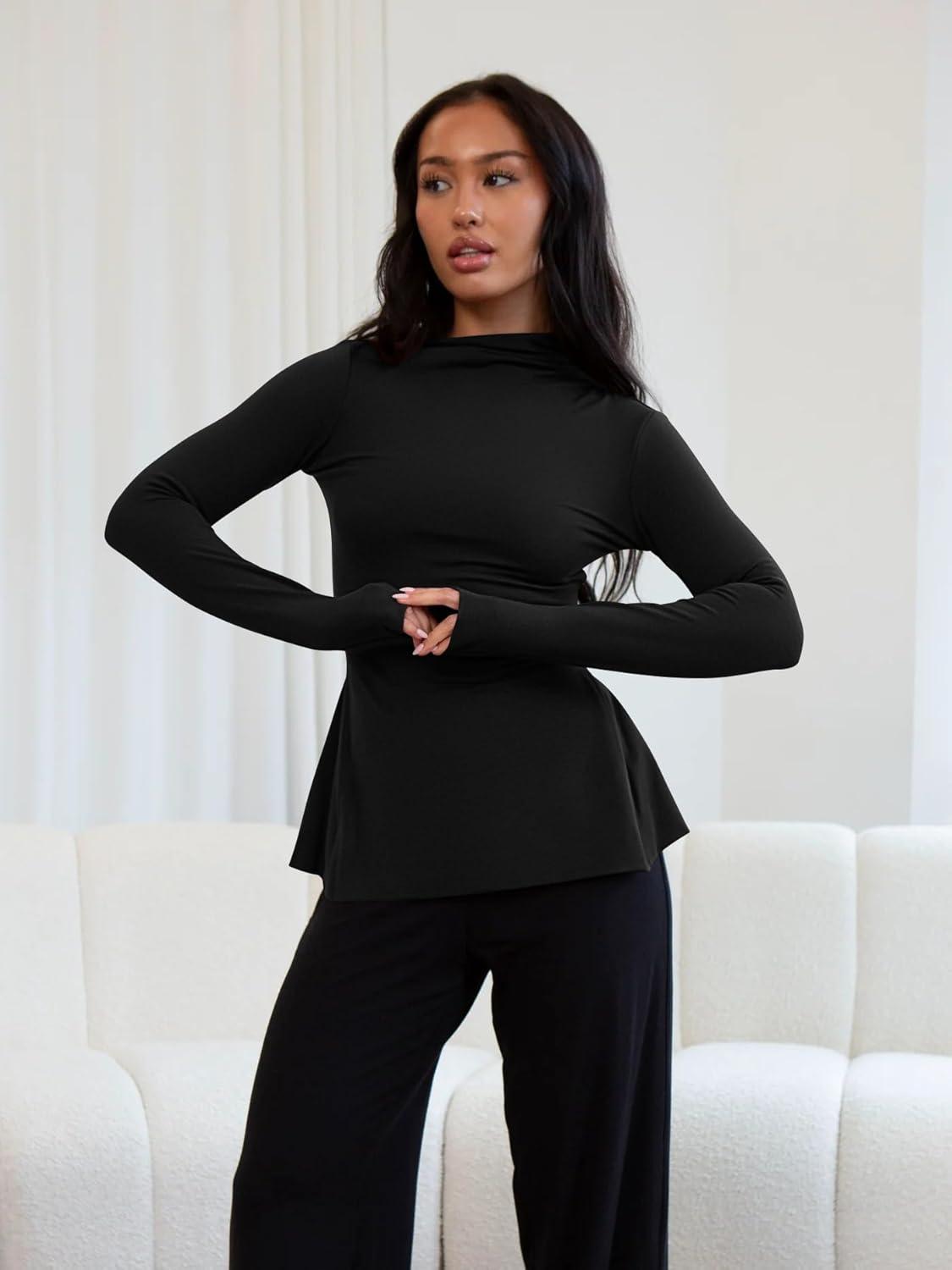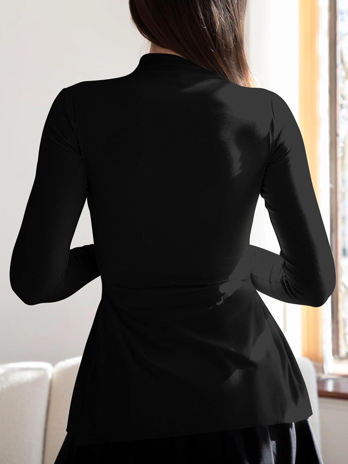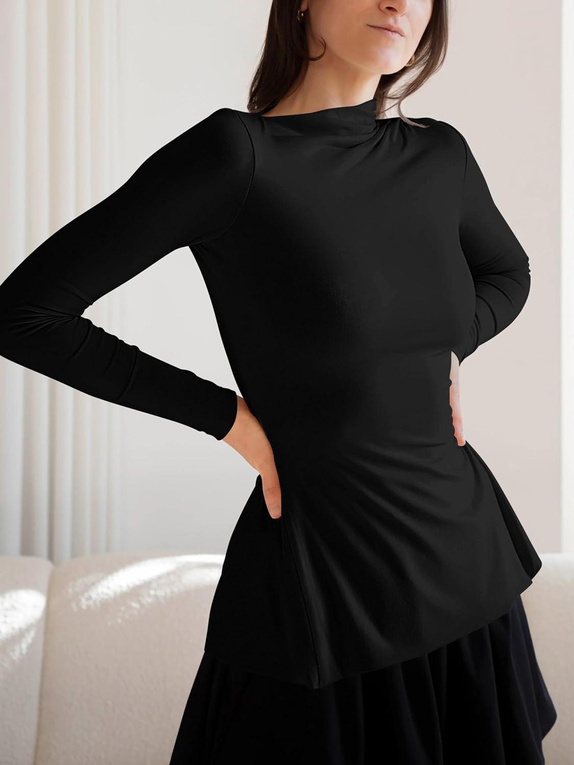 OQQ Long Sleeve Top Women Mock Neck Casual Tops Tunics Shirts(Black)