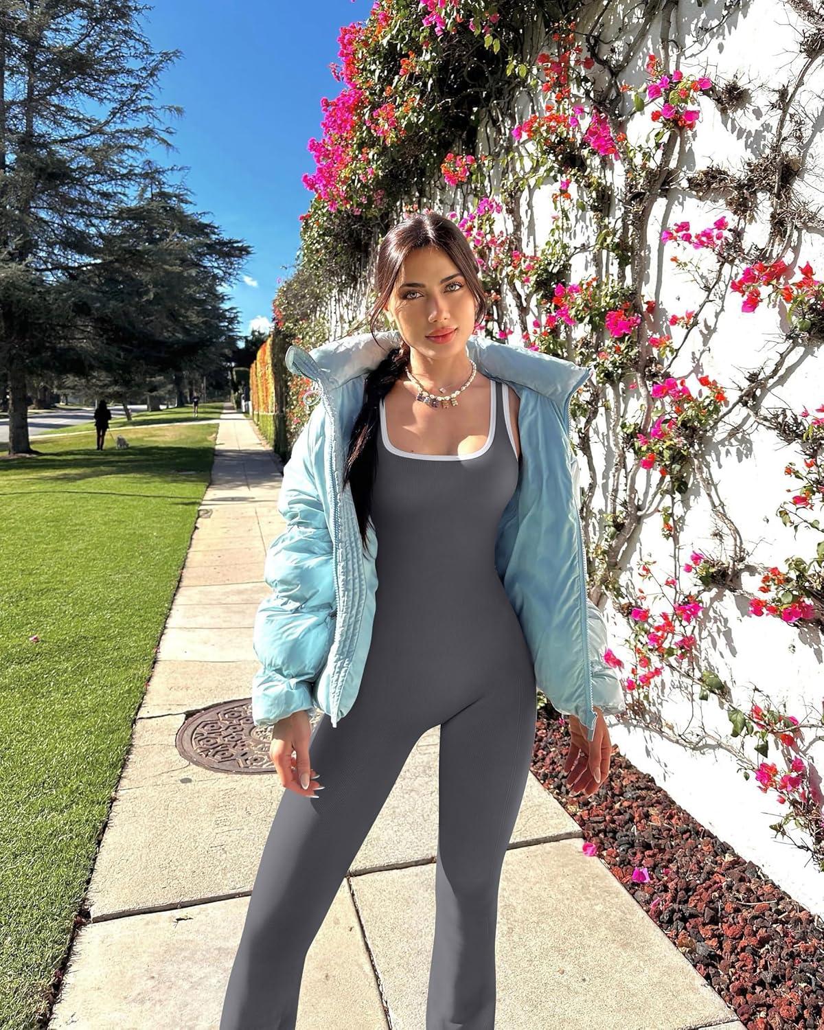 Be the first to review “OQQ Women Jumpsuits Sleeveless Square Neck Stretch Contrast Workout Active Flared Bottoms Tank Jumpsuit(Darkgrey)”