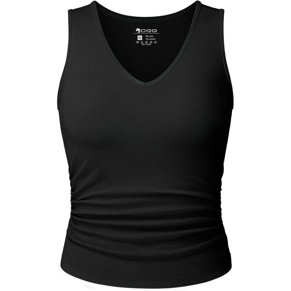 OQQ Women Shirts Sleeveless V Neck Stretch Clothes Basic Tank Tops(Black)