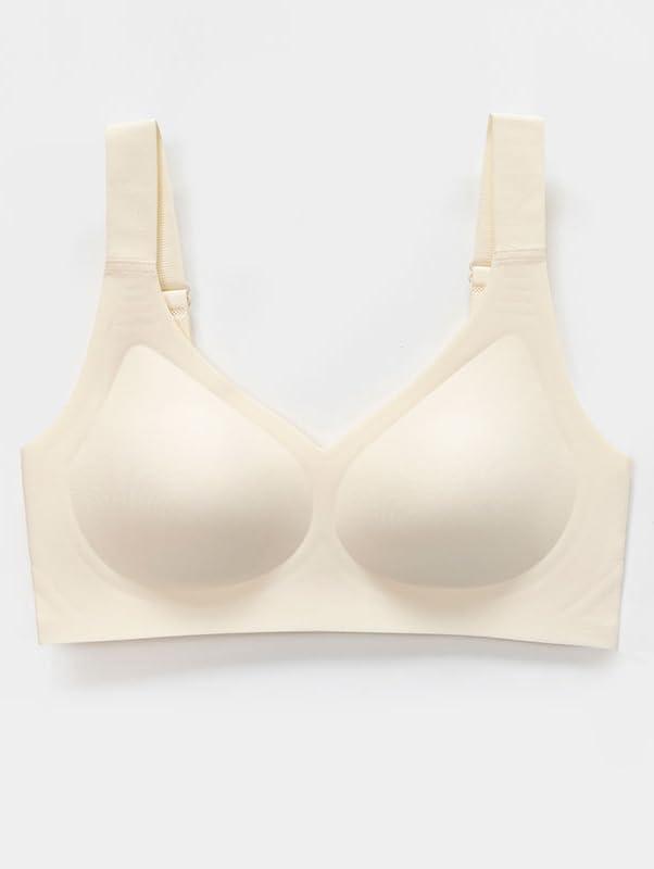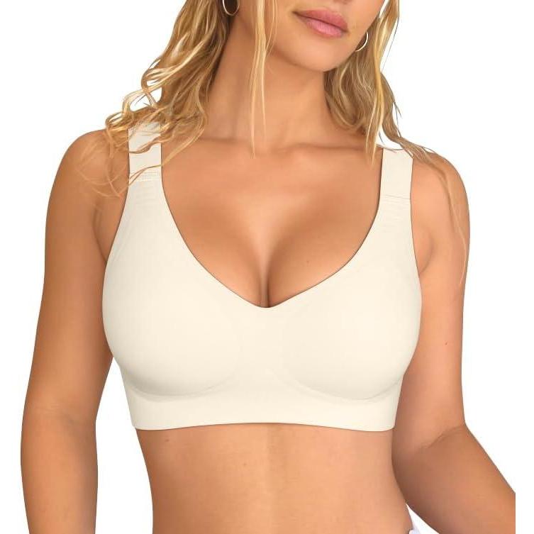 OQQ Womens Seamless Everyday Bra No Underwire Comfort Push Up Bras V Neck Soft Wireless Bralette Full Coverage Sport Bra(Nude)
