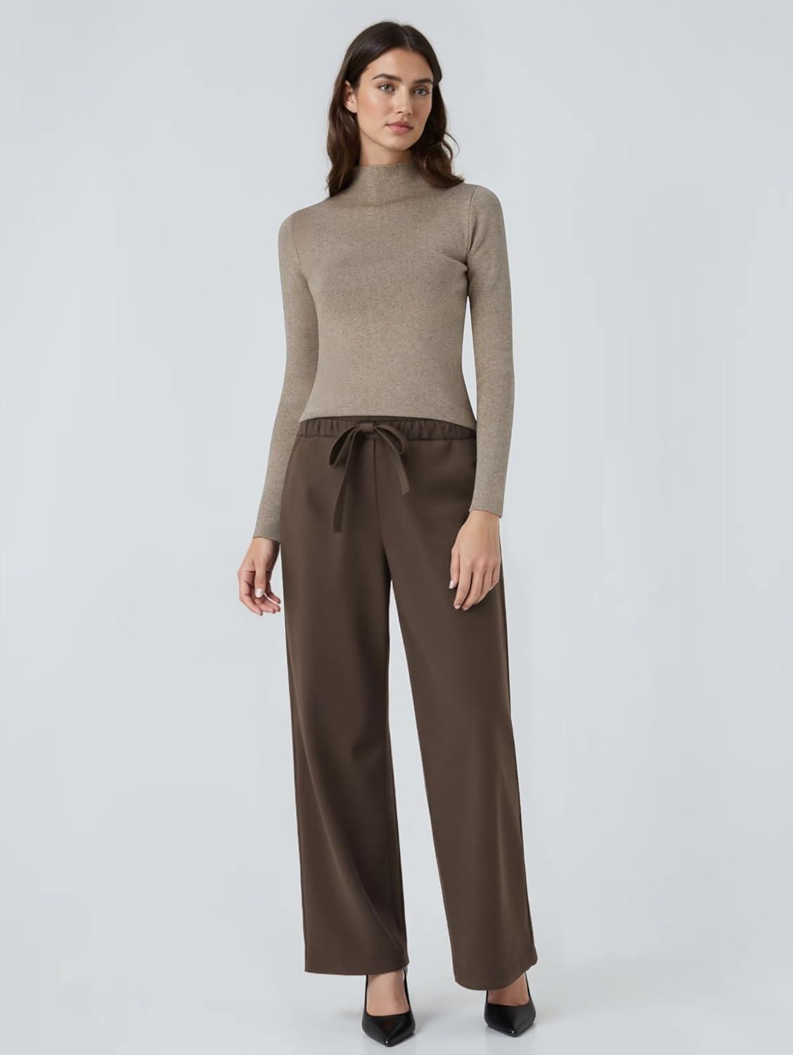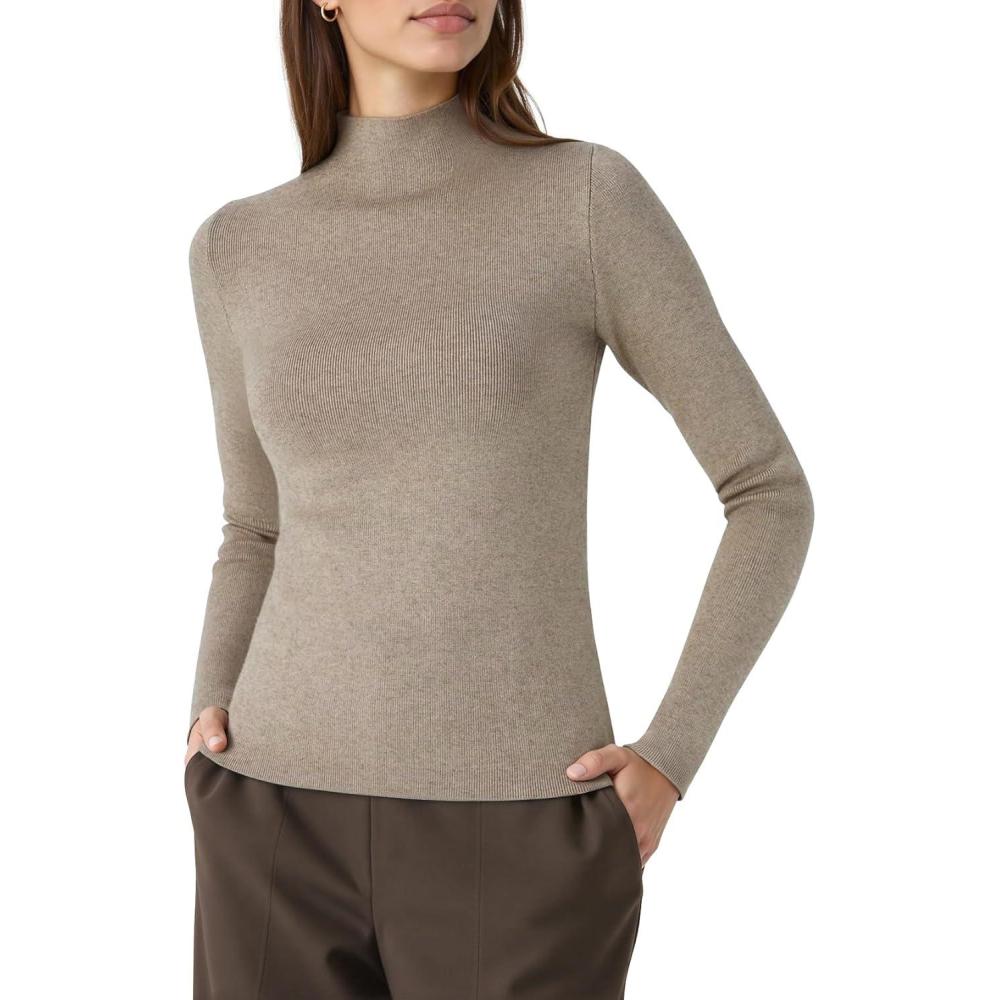 imageOQQ Womens Sweaters Mock Neck Long Sleeve Wool Skinny Work Pullover SweatersCamel