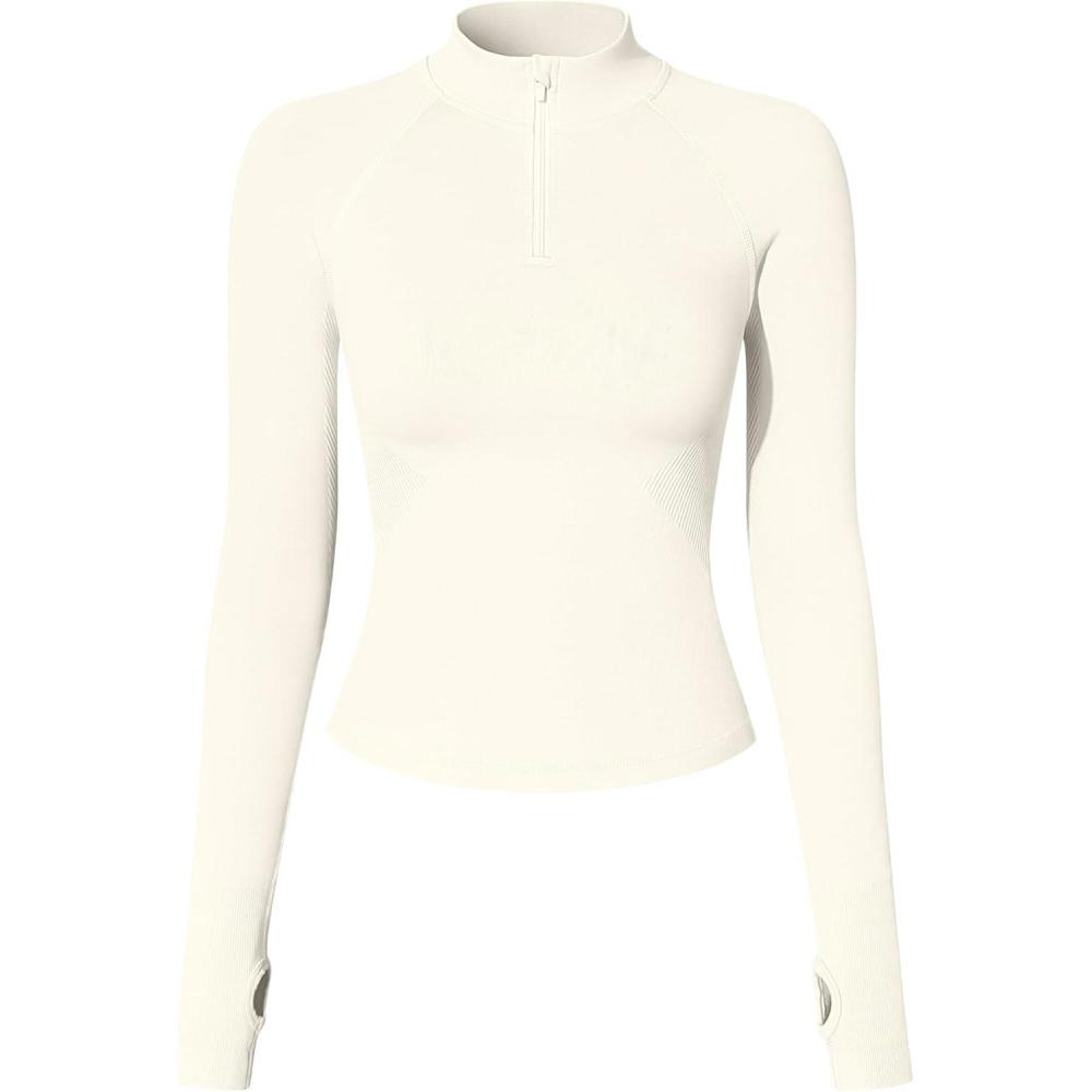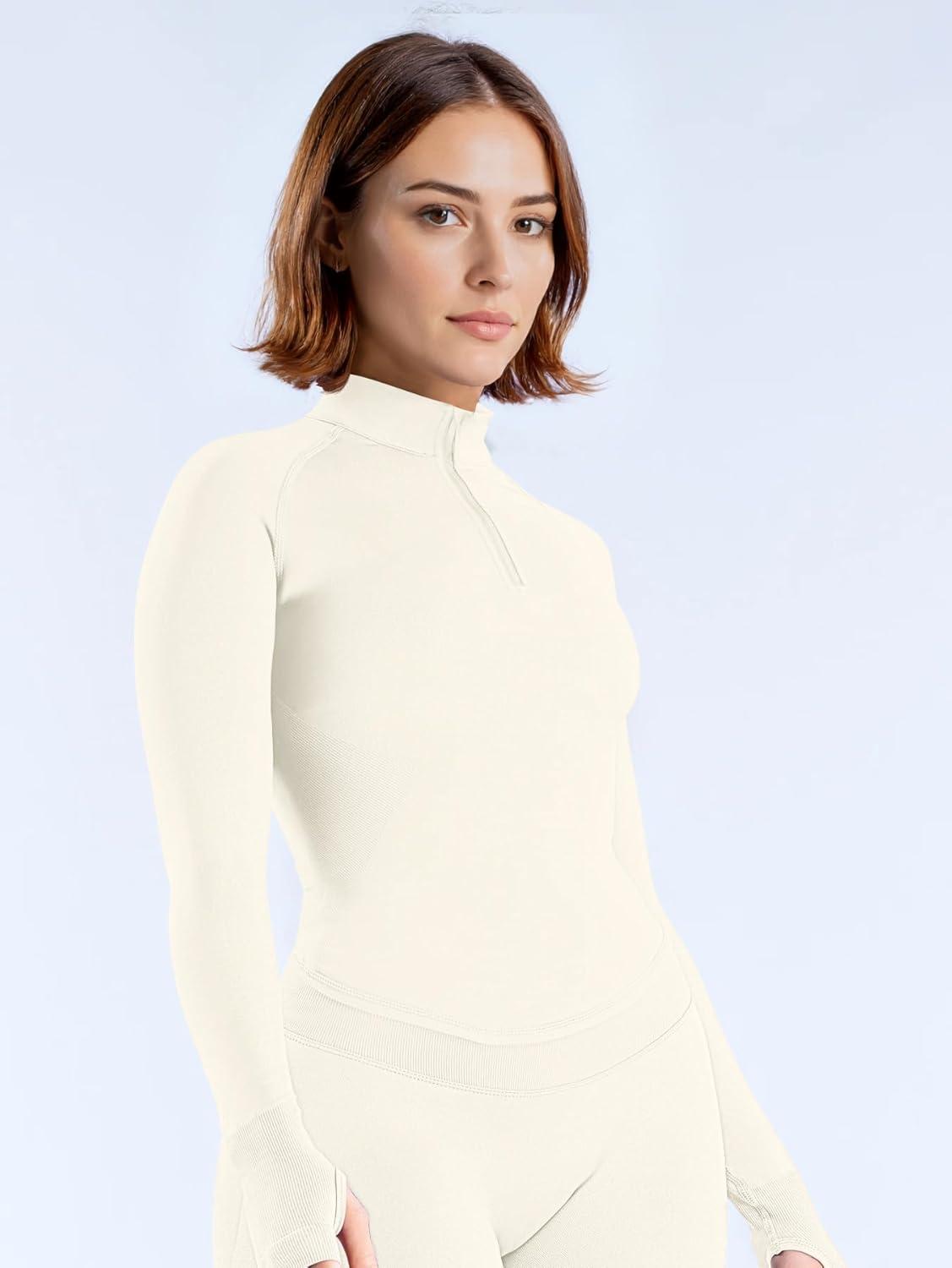 OQQ Workout Shirts Women Long Sleeve Yoga Tops Impact Half Zippy Tunics Running Shirts(Beige)