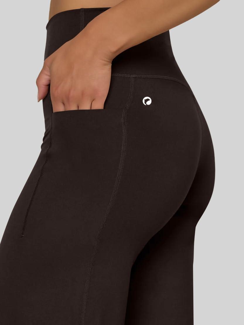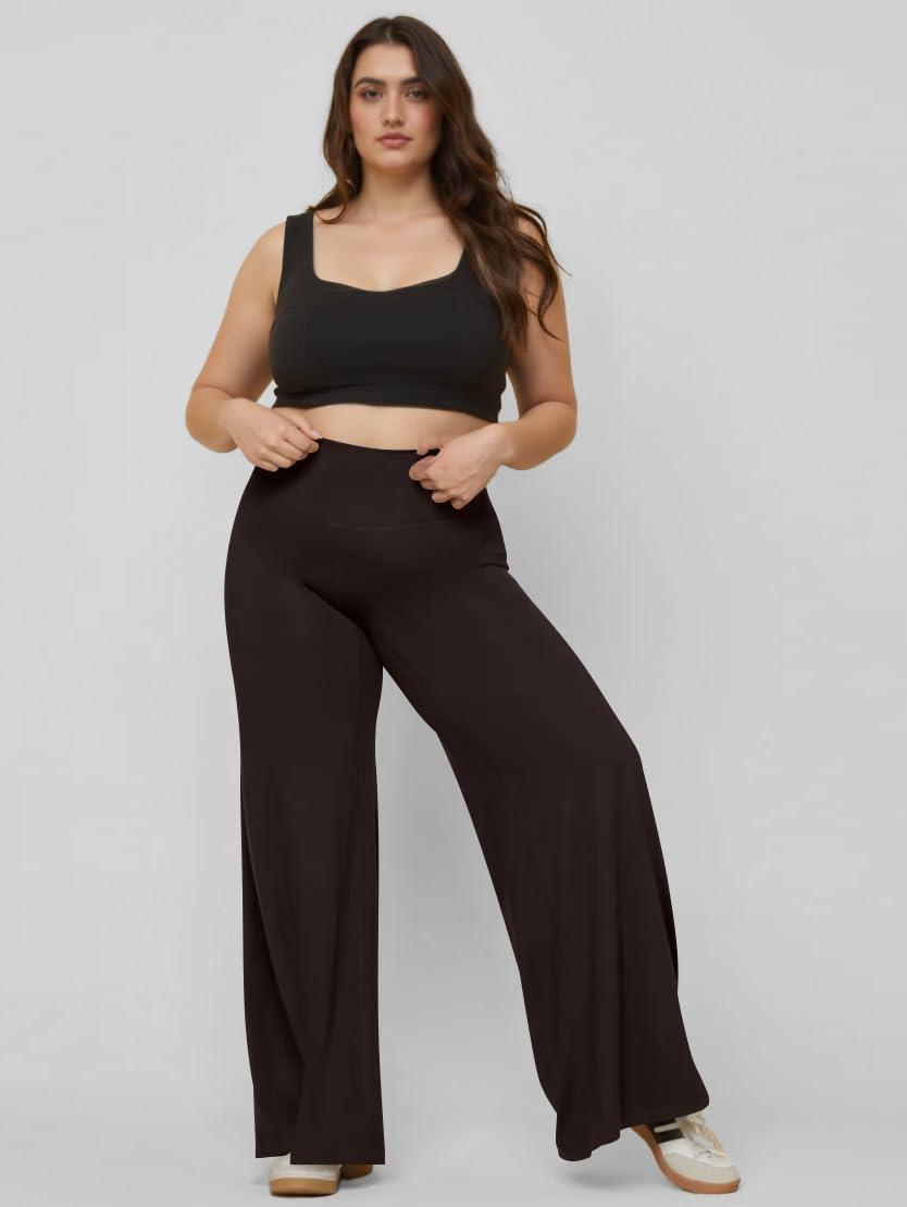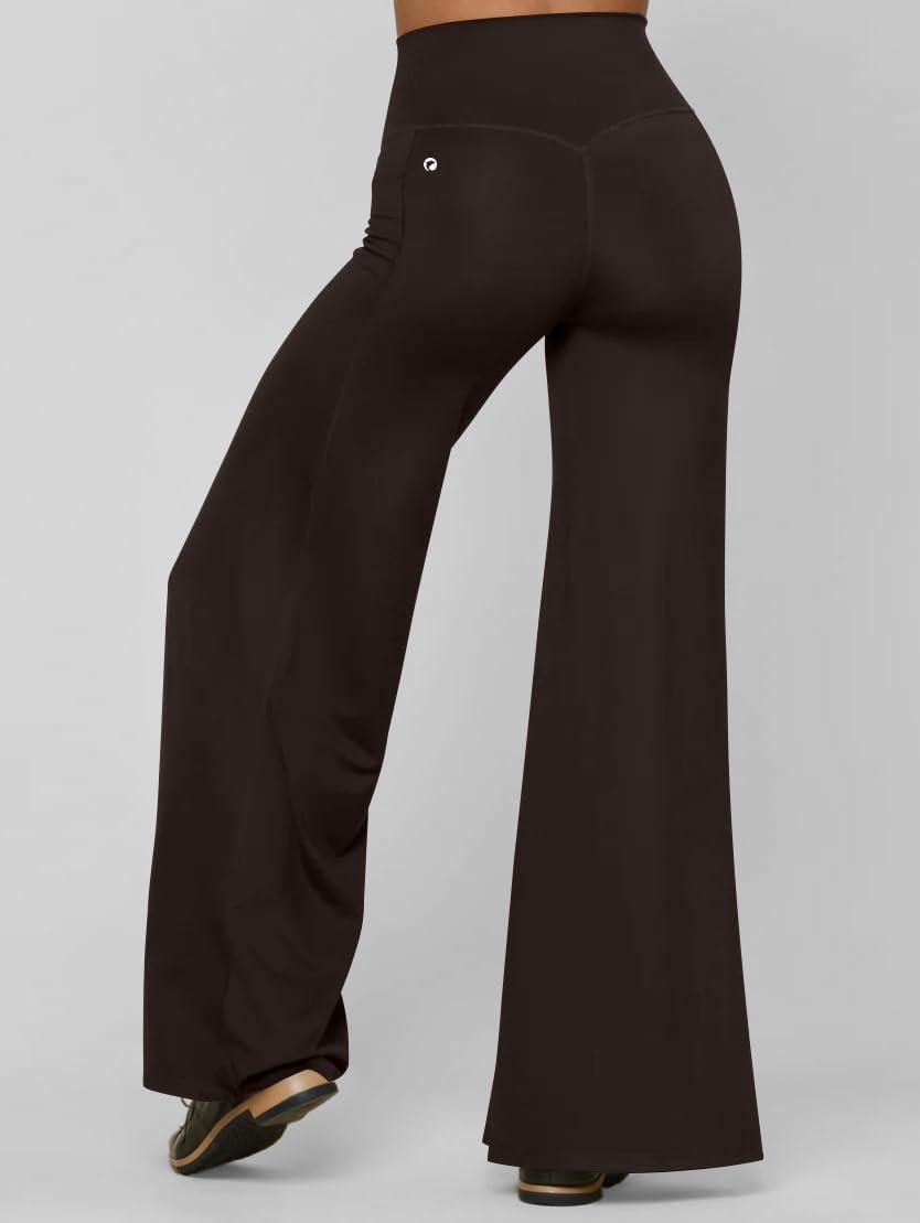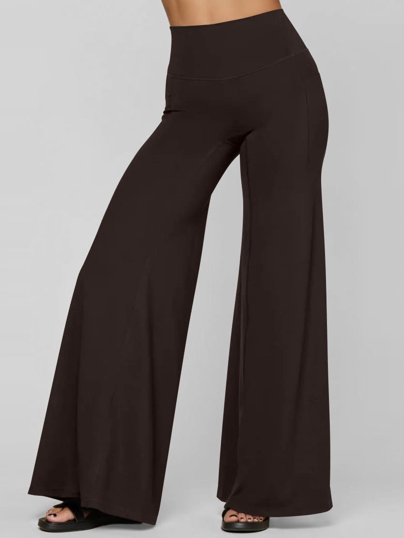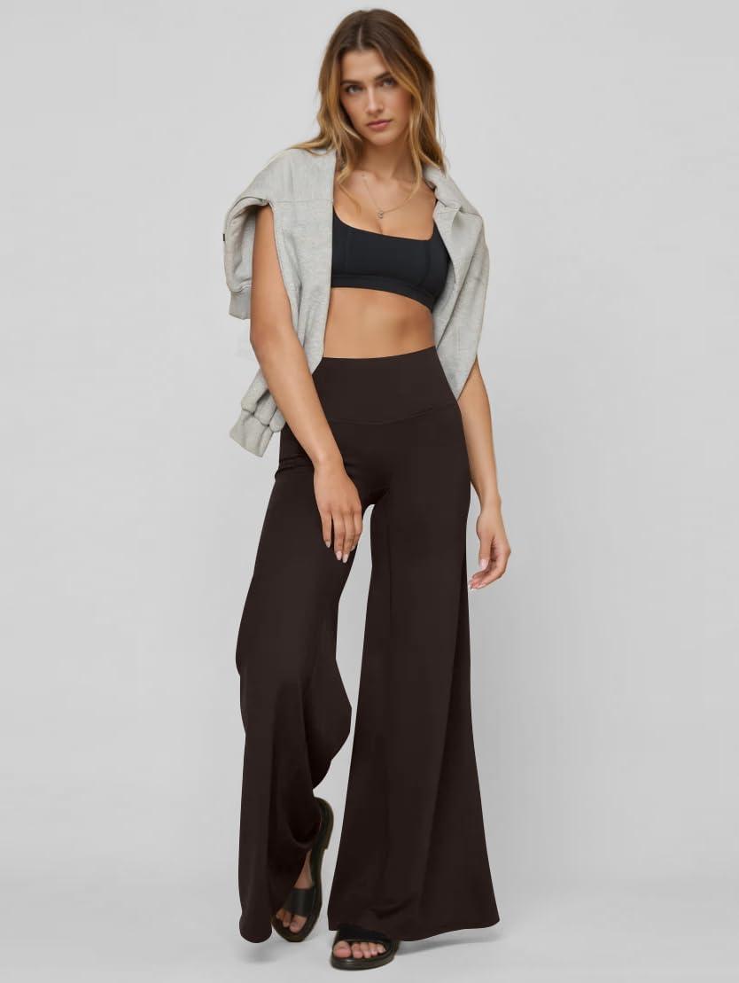 OQQ Yoga Pants Women High Waist Stretch Soft Casual Wide Legging Bottoms with Pockets(Darkbrown)