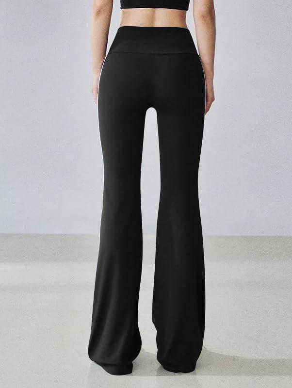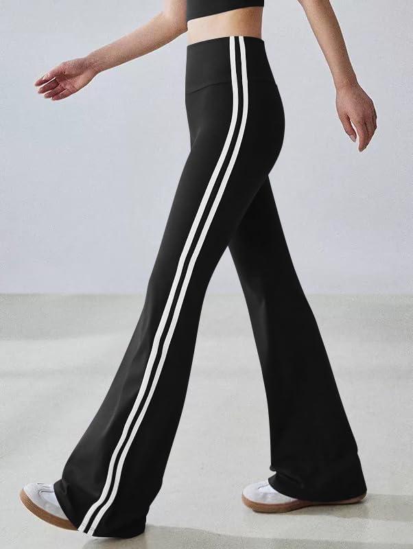 OQQ Yoga Pants Women High Waist Stripes Soft Casual Stretch Flared Bottoms Trousers(Black)